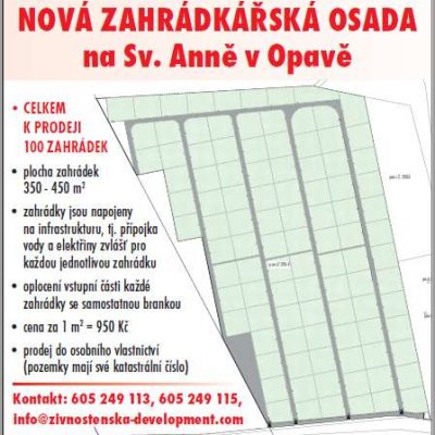 Zahradkářská osada sv. Anna Rezervujte si zahrádku v nové zahradkářské osadě na sv. Anně v Opavě.